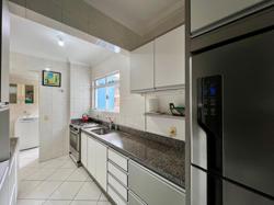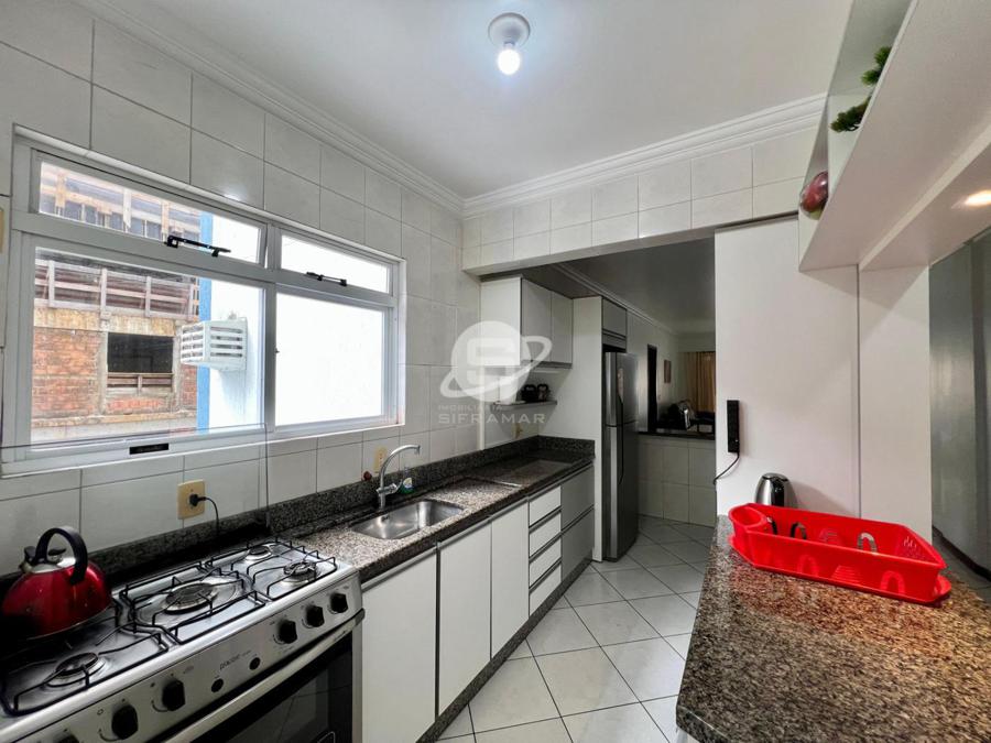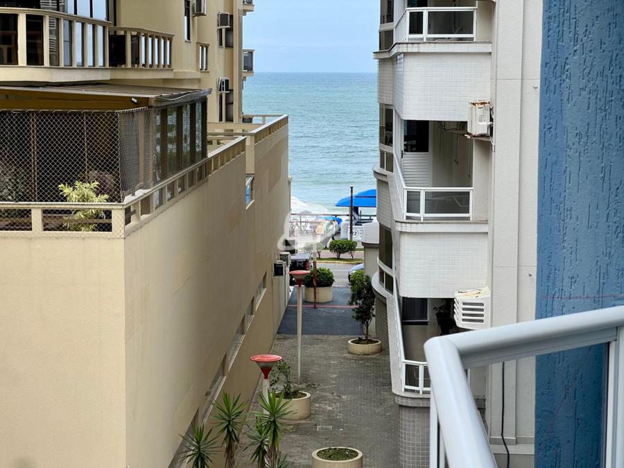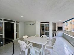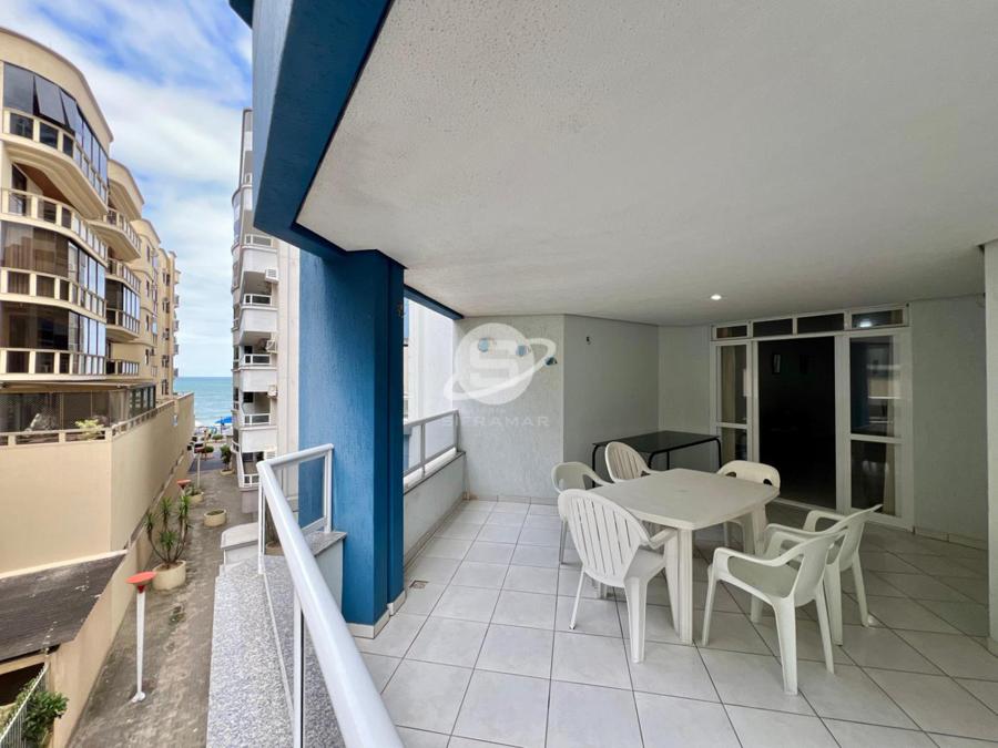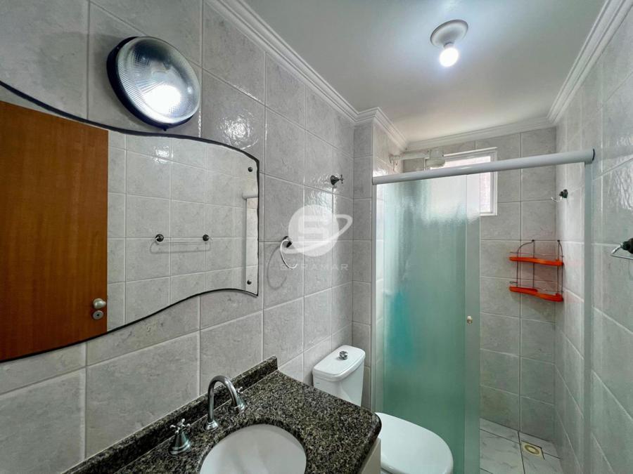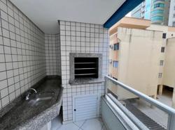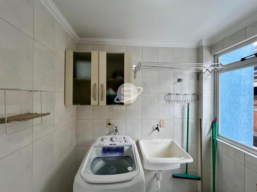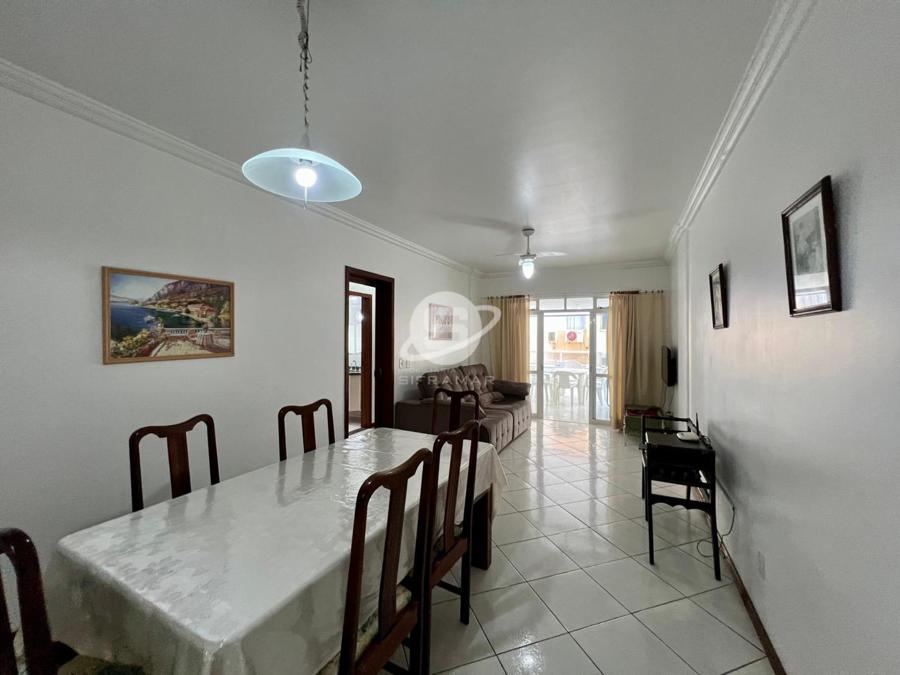 Apartamento de três quartos, sendo uma suíte, mais banheiro social. Sala de TV, sala de jantar, cozinha, área de serviço com máquina de lavar roupas, sacada com churrasqueira e vista para o mar.