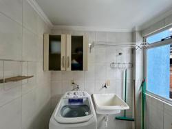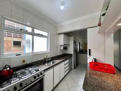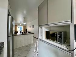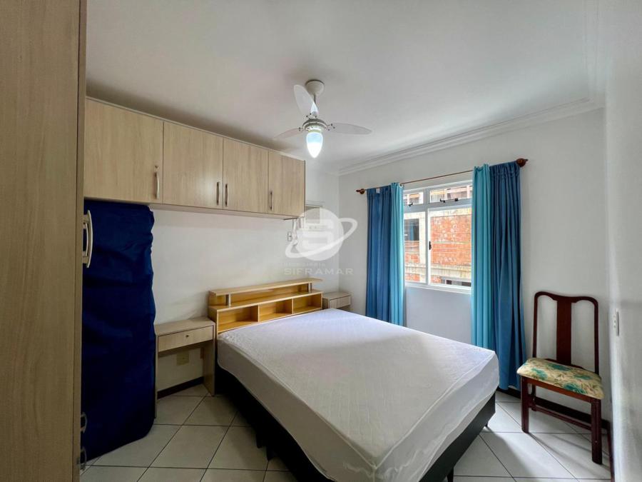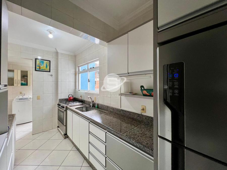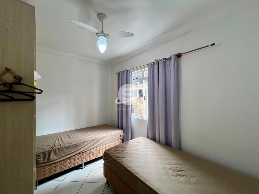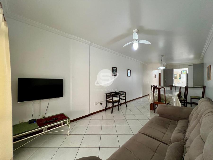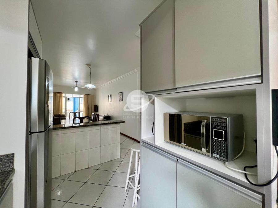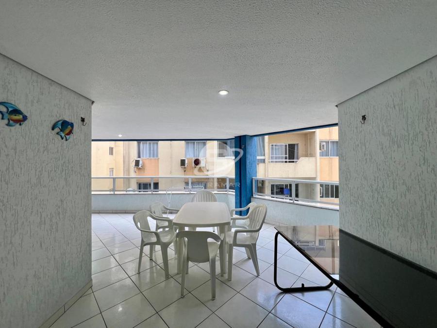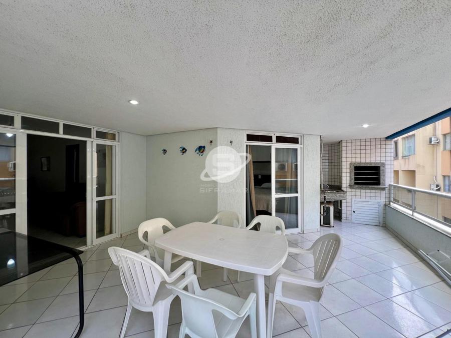 Apartamento de três quartos, sendo uma suíte, mais banheiro social. Sala de TV, sala de jantar, cozinha, área de serviço com máquina de lavar roupas, sacada com churrasqueira e vista para o mar.